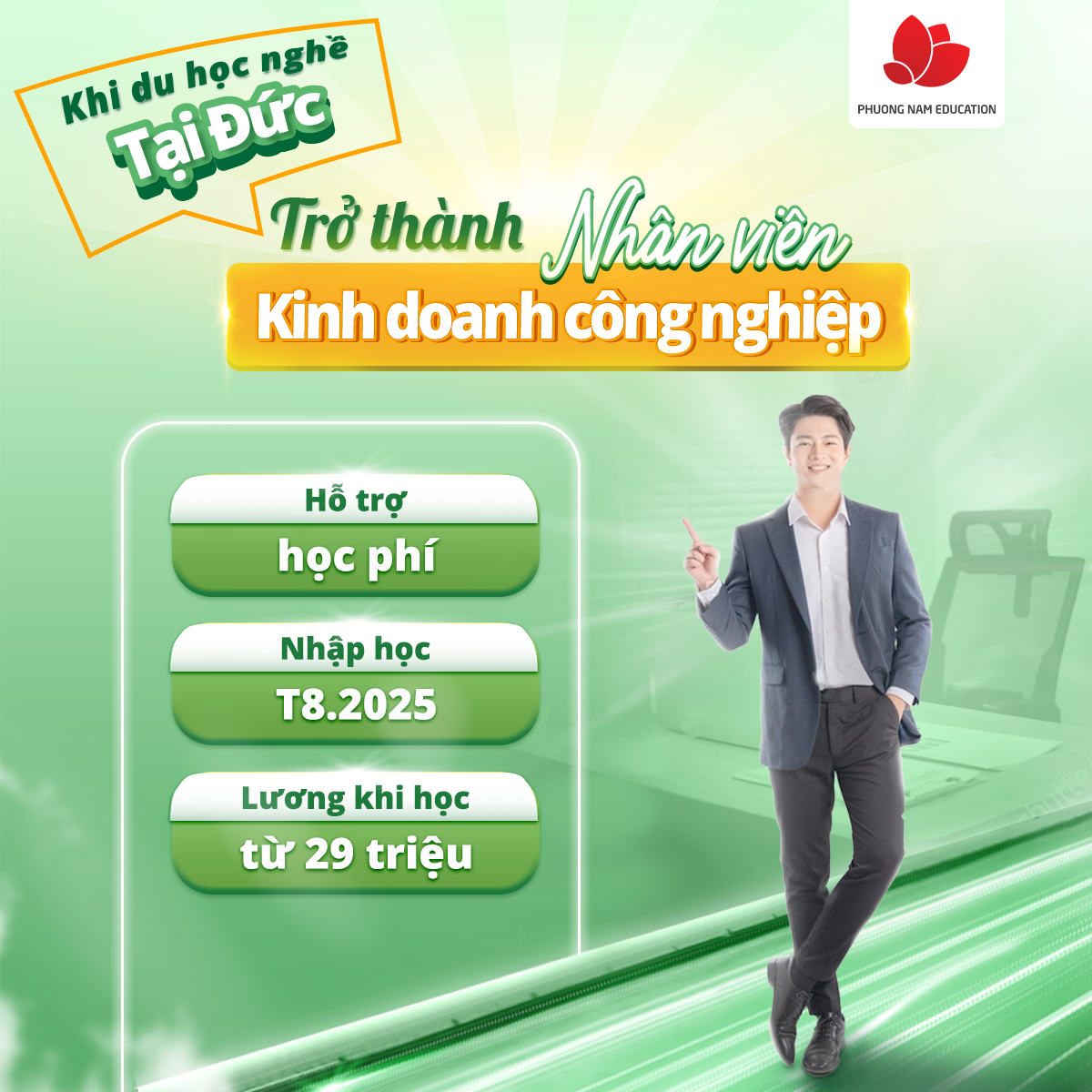 Bắt đầu hành trình sự nghiệp toàn cầu với thu nhập từ 31 triệu/tháng ngay trong năm học đầu tiên khi bạn lựa chọn du học nghề ngành Kinh doanh công nghiệp tại Đức - quốc gia có nền kinh tế phát triển hàng đầu tại châu Âu.