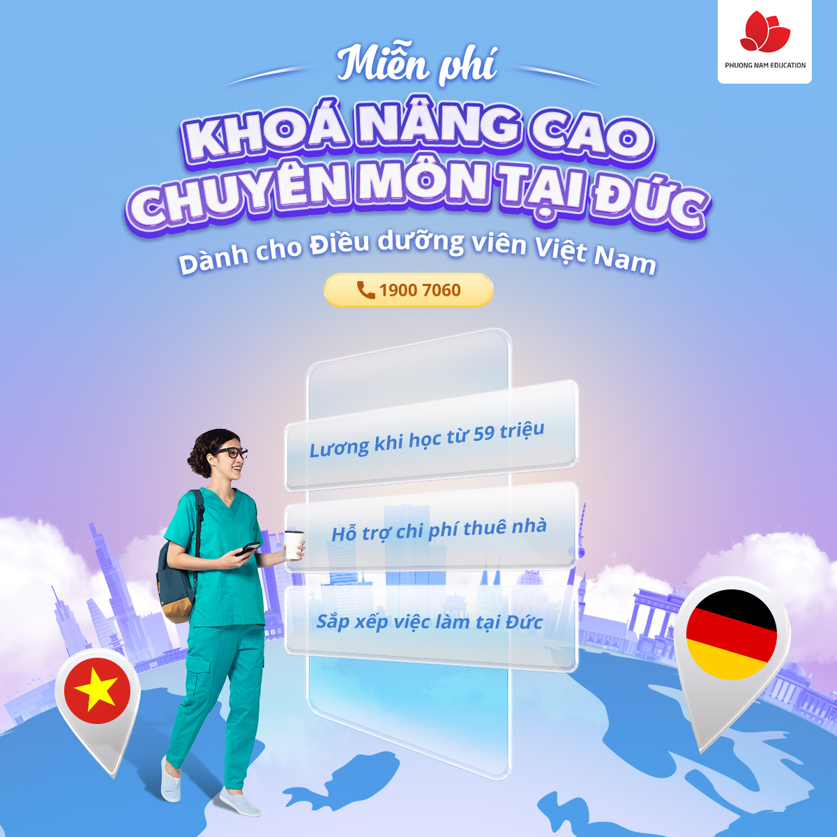 Săn ngay tấm vé vàng nâng cao tay nghề miễn phí dành riêng cho Điều dưỡng viên khi tham gia chương trình Chuyển đổi văn bằng tại Đức cùng gói đài thọ lên tới 230.000.000 bao gồm vé máy bay, học phí tiếng Đức A1-B1 & toàn bộ lệ phí xử lý hồ sơ,.... Không những thế, các bạn còn được hưởng hàng loạt các chính sách ưu đãi vượt trội khác chỉ có trong suất tuyển này của Phuong Nam Education.