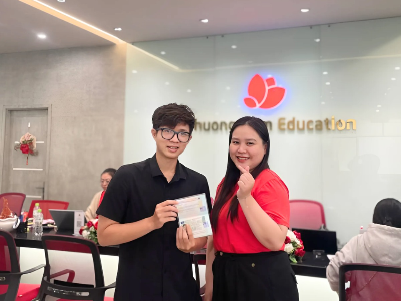 Chúc mừng bạn Khải Hoàn đã gặt hái được quả ngọt sau bao ngày chăm chỉ học tập, tất bật phối hợp với chuyên viên tư vấn của Trung tâm Phương Nam chuẩn bị giấy tờ, hoàn thiện hồ sơ xin thị thực. Mong rằng Khải Hoàn sẽ luôn kiên trì với mục tiêu đã định và gặt hái thành công rực rỡ trên con đường này nhé! Phuong Nam Education vẫn luôn dõi theo Khải Hoàn, nên đừng ngần ngại mà liên hệ với Trung tâm khi cần giúp đỡ bạn nha!