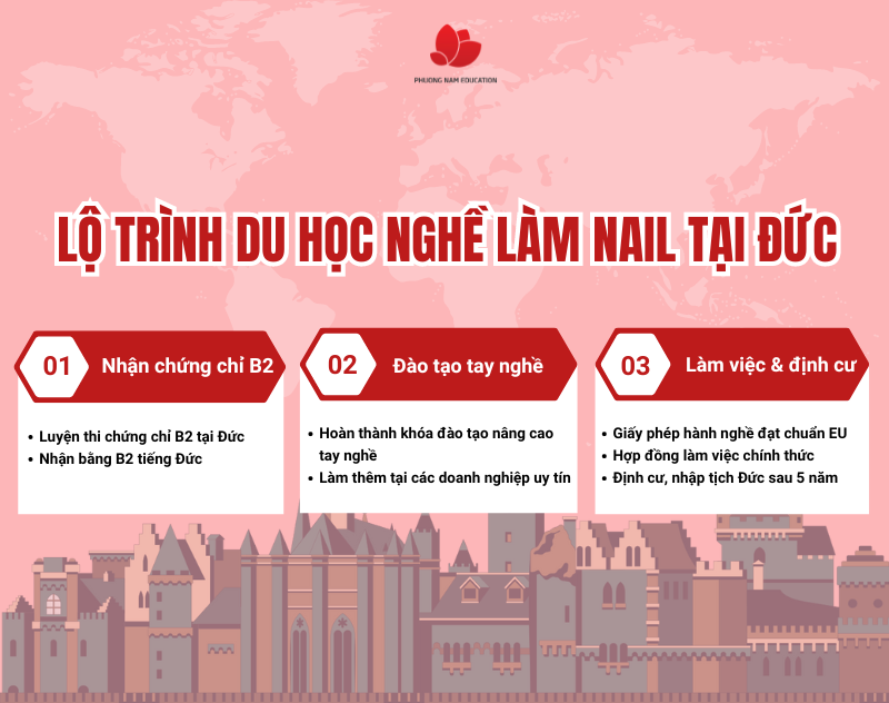 Về lộ trình du học nghề Đức ngành Nail, các bạn sẽ phải trải qua 03 giai đoạn chính: